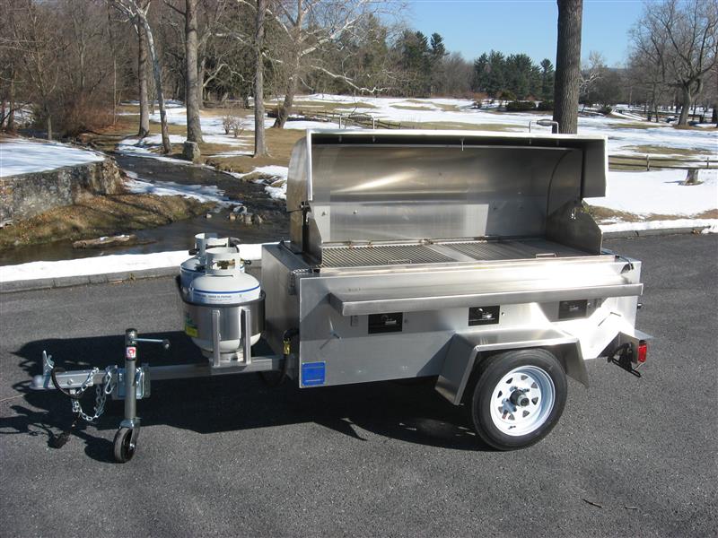 Tow behind gas grills comes with a 2’ x 5’ Stainless Steel Cooking Surface. It has three 30,000 BTU burners and tandem 20lb propane tanks. Rental includes two full 20# tanks of propane.